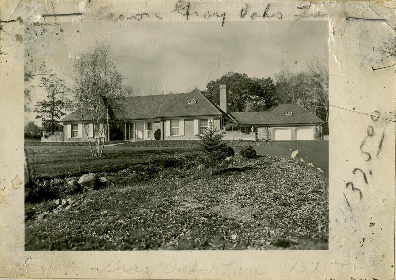 Brick house on the corner of Alpine Road and Gray Oaks Lane with French-style slate roofs.Collection
