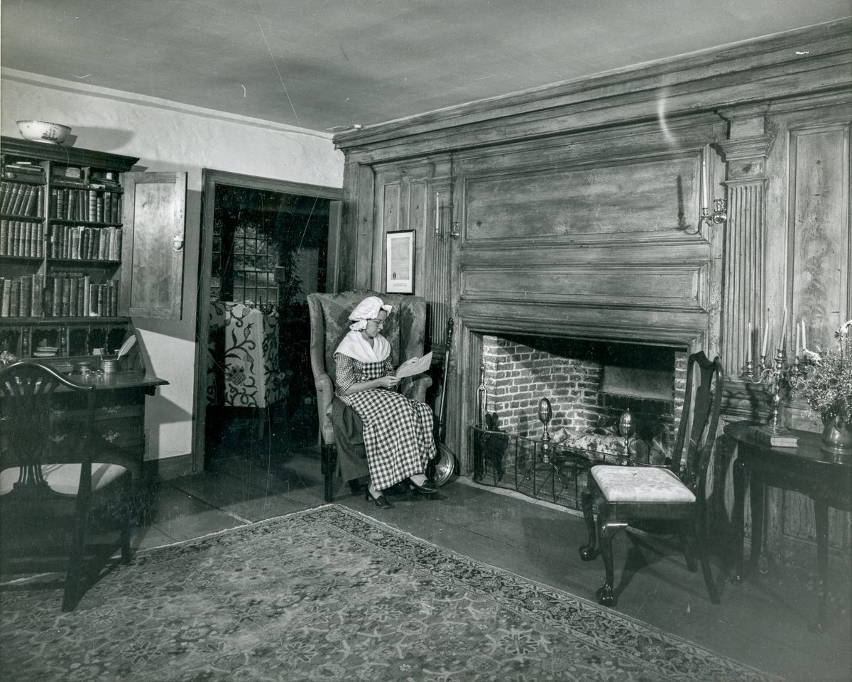 A Junior League guide in period costume in the parlor of the Bush-Holley House.Collection