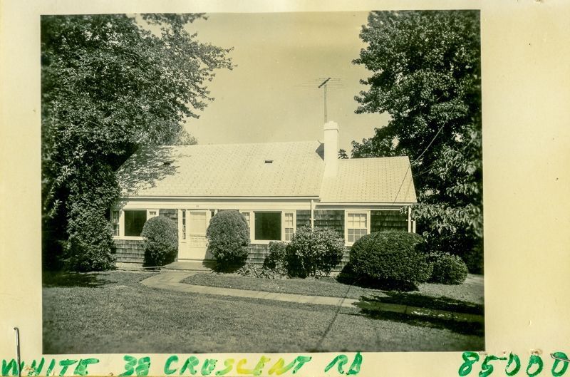 Cape Cod house built in 1952 with shingle siding viewed from the street.