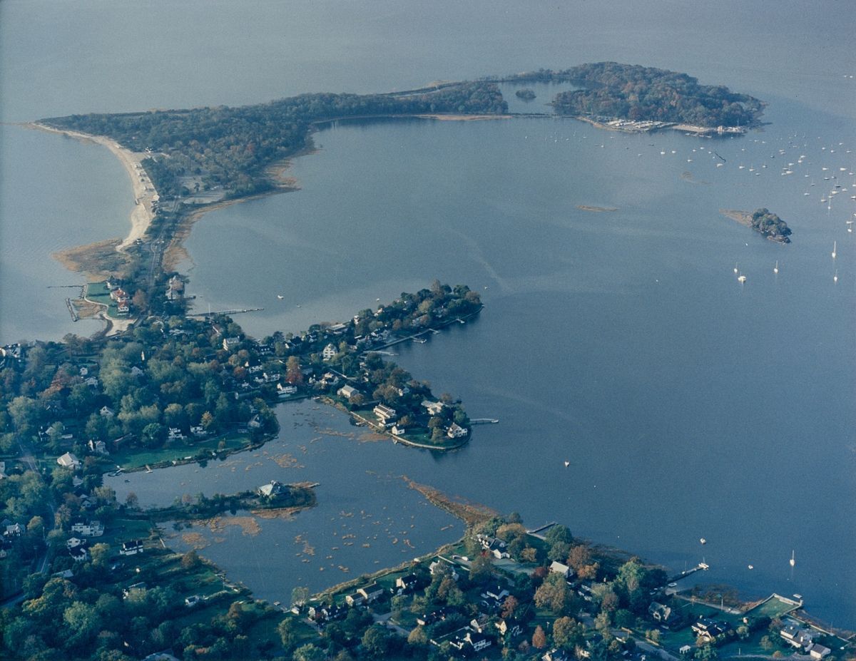 Aerial view, looking south, of Greenwich Point.