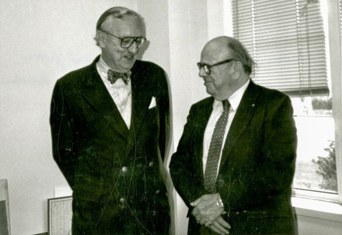 Bernard Yudain (left) a member of Greenwich's 350th Anniversary committee and William Finch (right) the town historian.Collection