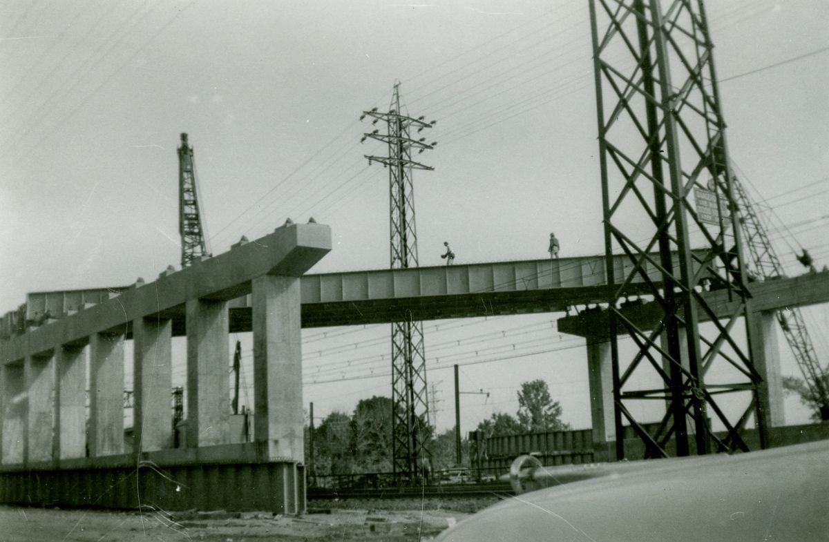 The highway (I-95) bridge over the Mianus River under construction in October 1957.Collection