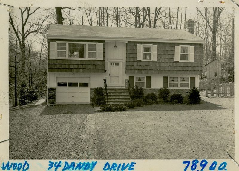 Raised ranch built circa 1970 with shingle siding viewed from its lawn.