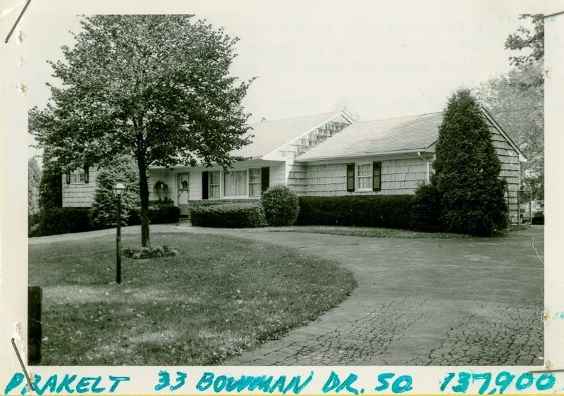 Split-level house with shingle siding built in 1960 viewed from its driveway.