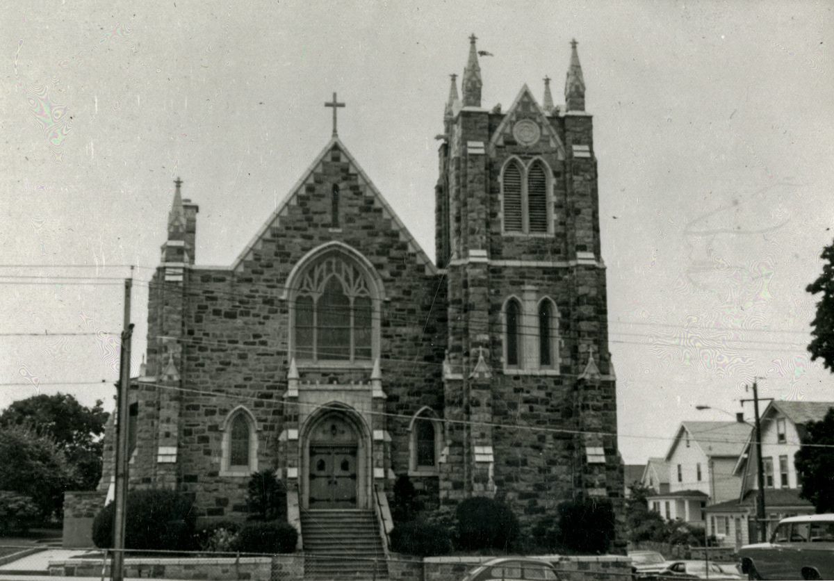 The front face of St. Roch Church, built in 1922 by the local parisoners, many of whom worked as masons and stonecutters.Collection