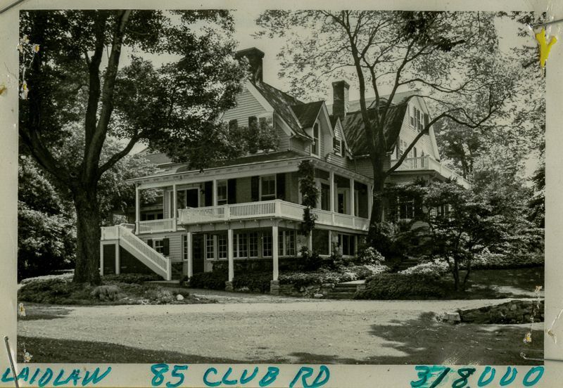 Victorian house built in 1900 with a second floor wraparound porch and a third floor deck viewed from its lawn.