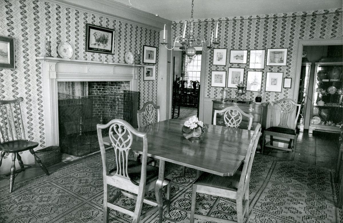 The 'best bedroom' in the Bush-Holley house interpreted as a sitting/dining room with a number of Childe Hassam's etchings hanging on the walls.Collection