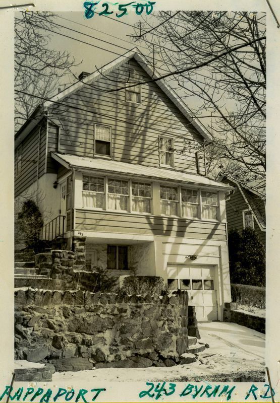 Farmhouse colonial house built in 1926, remodeled in 1965 with a garage viewed from the street.