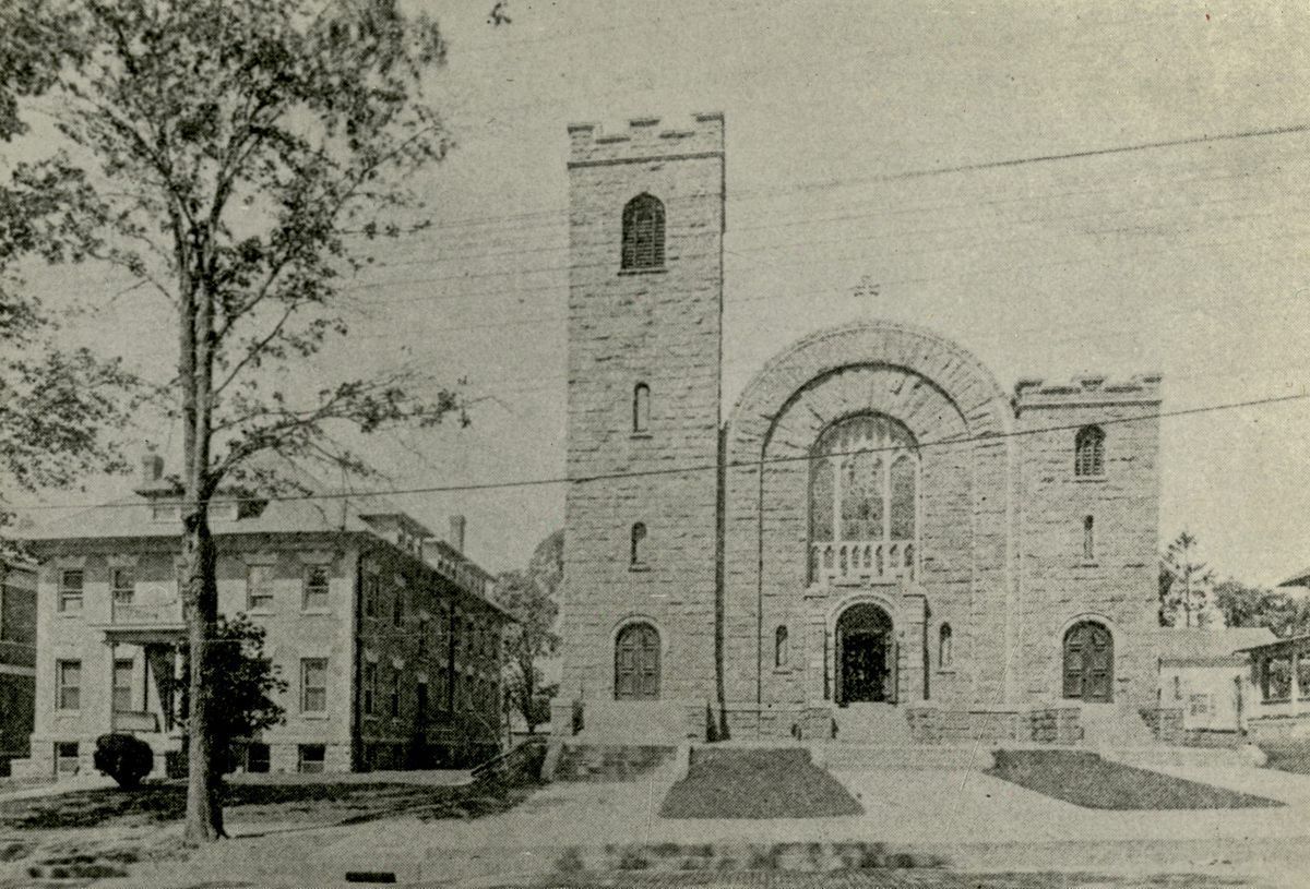 A view of St. Mary Church, shortly after the construction of the current stone church after the previous, wooden church, burnt down.Collection