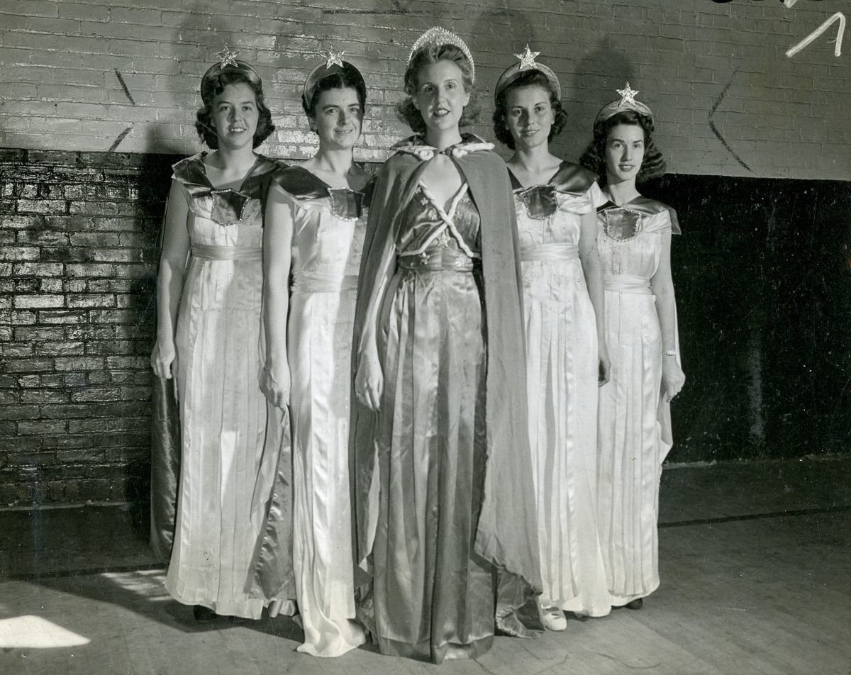 Helen Merritt as Miss Columbia and her 'Court of Honor' at a rehearsal for a performance called "Under Three Flags" that was done to celebrate the 300th Anniversary of Greenwich's Founding.Collection