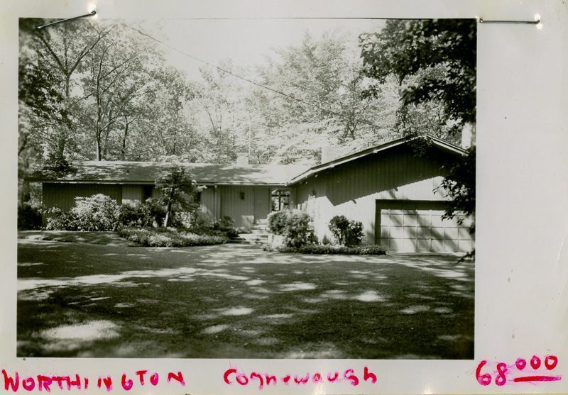 Contemporary ranch house built in 1956 viewed from its driveway.