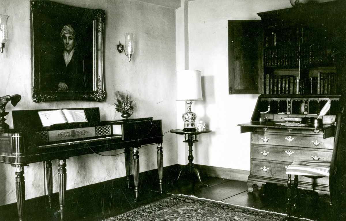 The parlor of the Bush-Holley House with an 18th-century style piano under a portrait of Sarah Bush.Collection