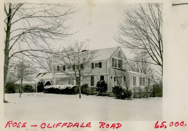 Cape Cod colonial built circa 1944 viewed from its snow-covered lawn.