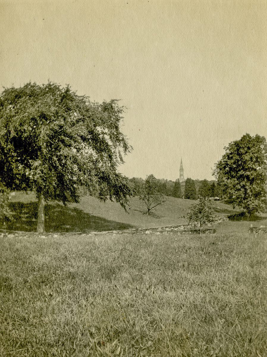 Looking north from lower Connecticut Avenue over Union Cemetery toward the Second Congregational Church.Collection