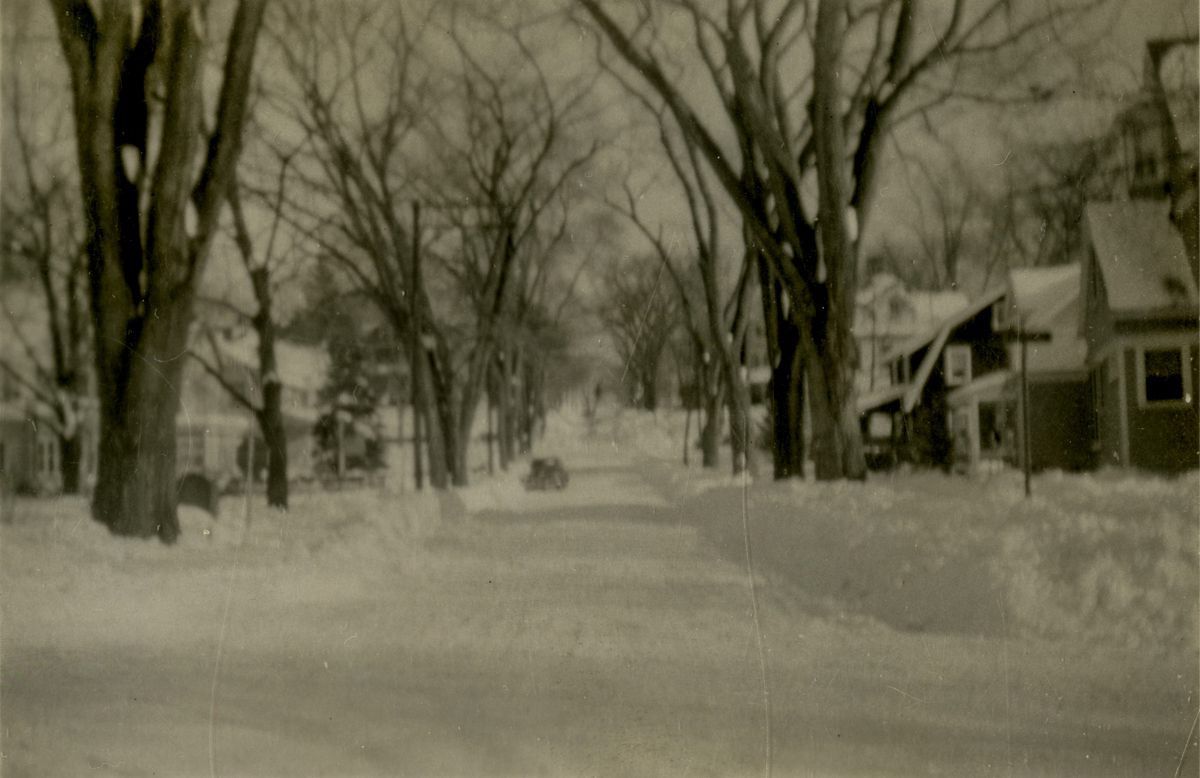 A view of East Elm Street, looking east from Mason Street, covered in 25 inches of snow on December 28th, 1947.Collection