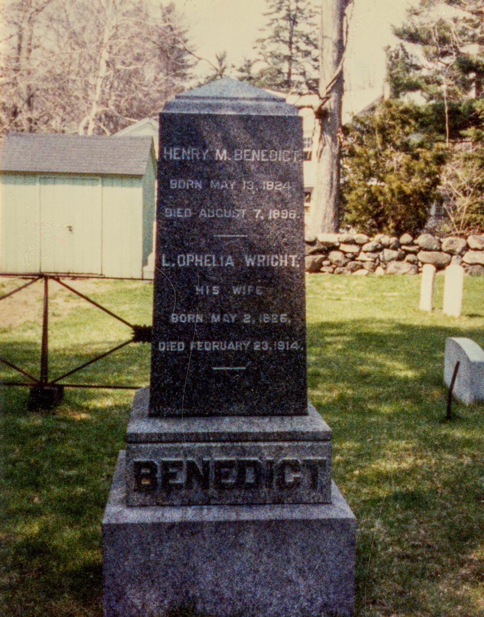 The gravestone of Henry M. Benedict and his wife L. Ophelia Wright.