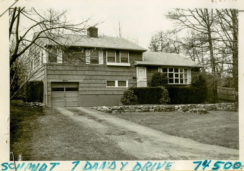 Colonial-style split-level built in 1957 viewed from the street.