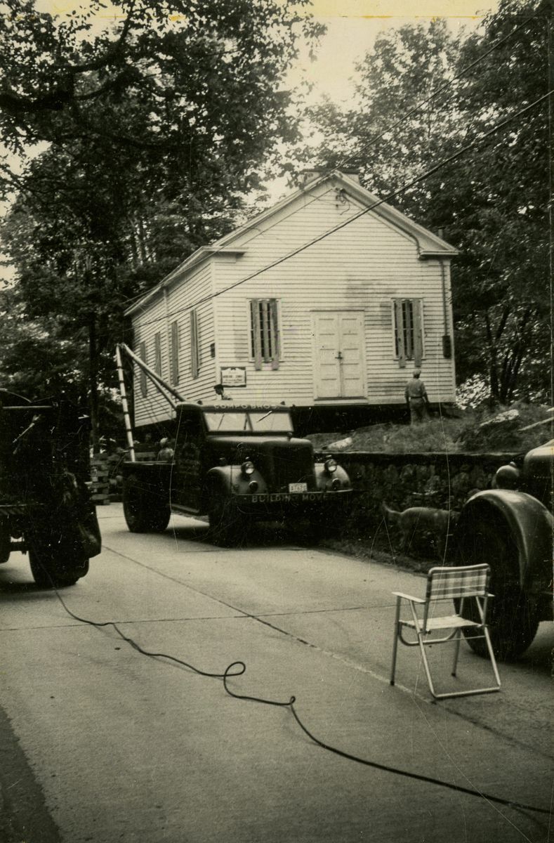 Images of the moving of Dingletown Community Church to its new site on August 13, 1959.