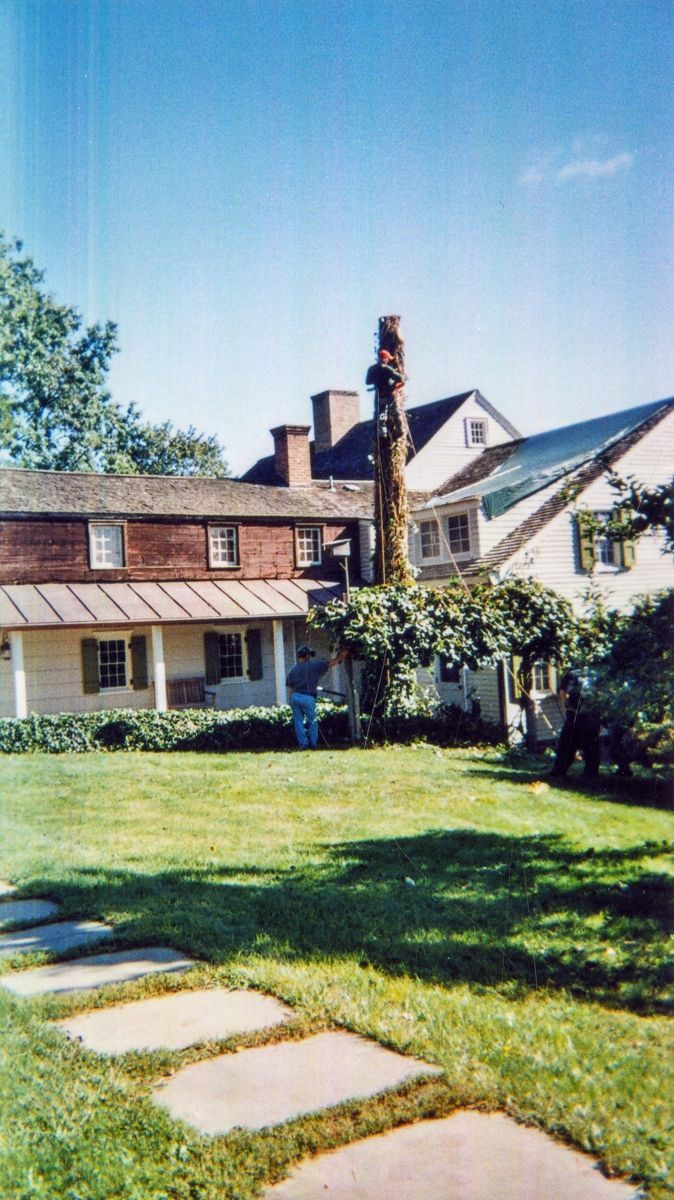Images of the removal of an old, ivy-covered tree that stood by the south side of the Bush-Holley House.