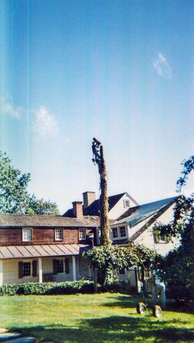 Images of the removal of an old, ivy-covered tree that stood by the south side of the Bush-Holley House.