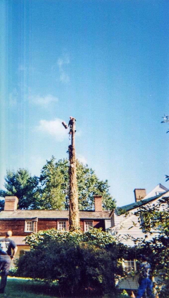 Images of the removal of an old, ivy-covered tree that stood by the south side of the Bush-Holley House.