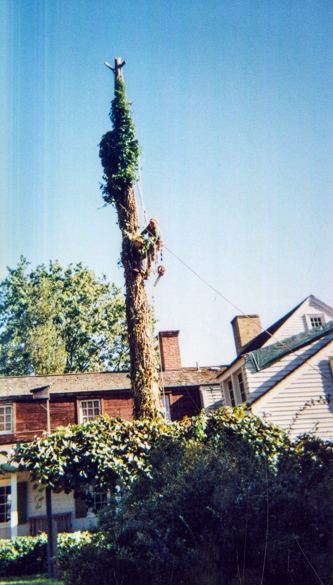 Images of the removal of an old, ivy-covered tree that stood by the south side of the Bush-Holley House.