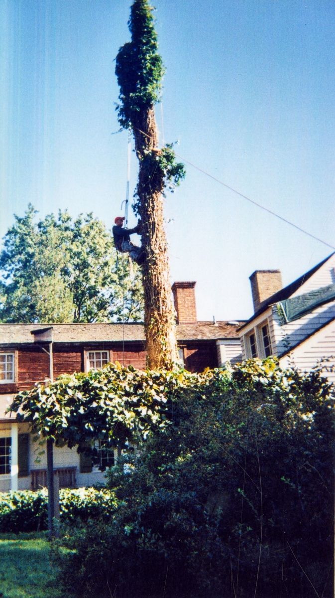 Images of the removal of an old, ivy-covered tree that stood by the south side of the Bush-Holley House.