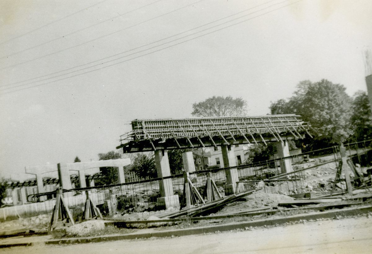 The highway (I-95) bridge over the Mianus River under construction in October 1957.Collection