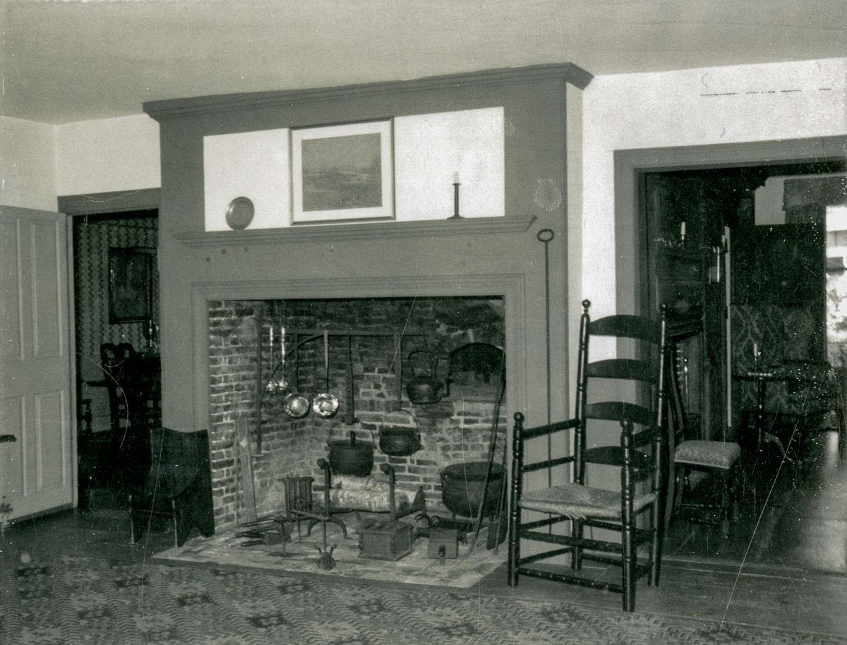The fireplace in the original kitchen, now dining room of the Bush-Holley House.Collection