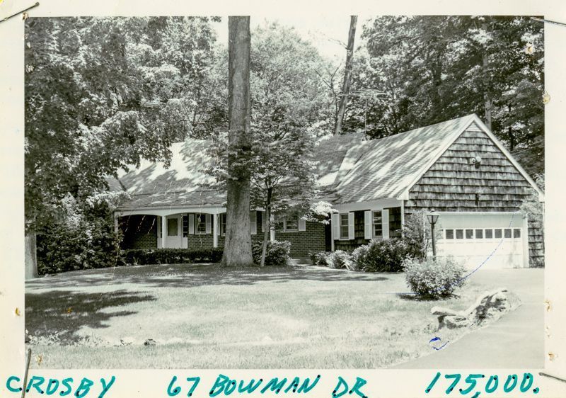 Colonial-style house built in the 1950's with shingle siding viewed from the street.
