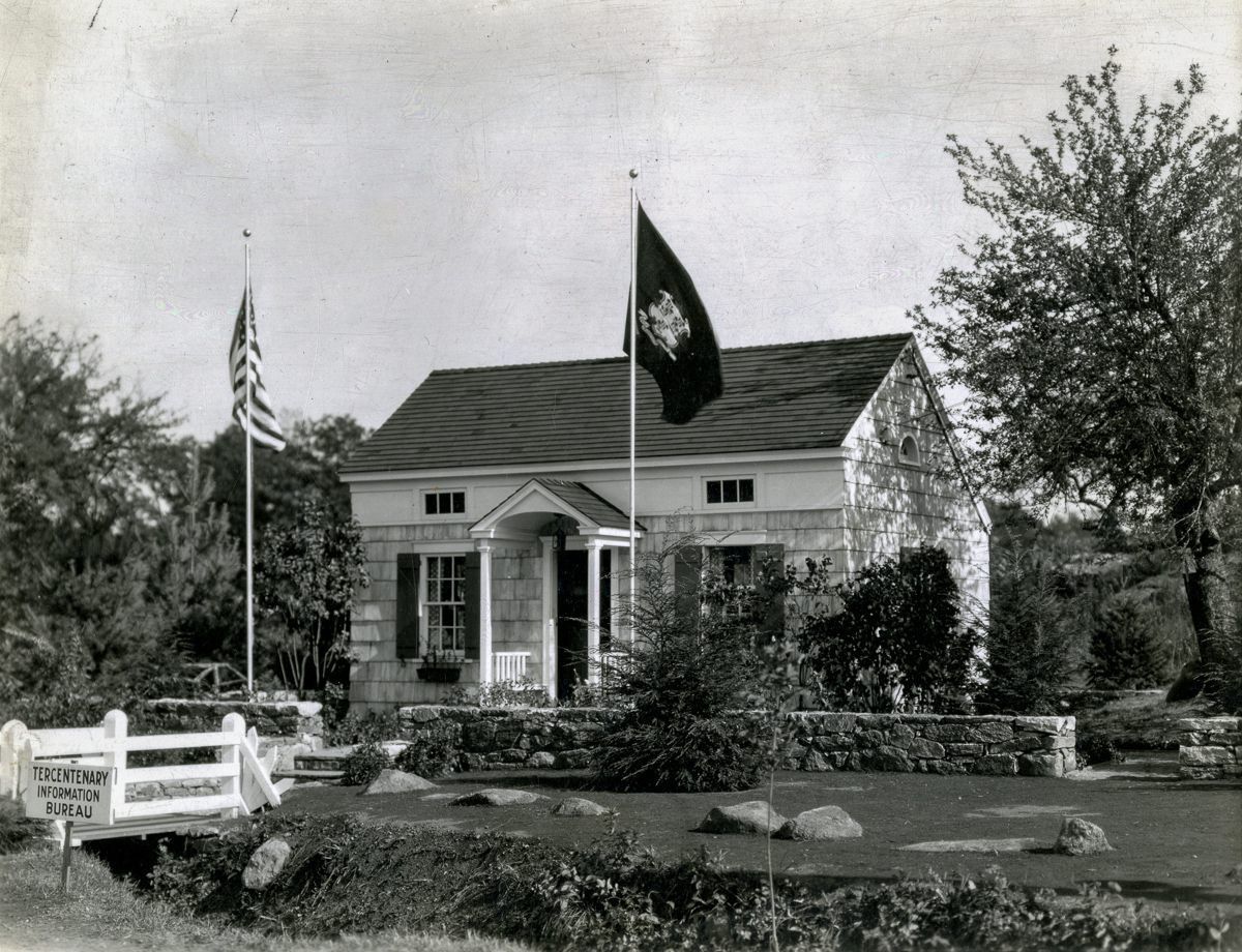 An information center for Connecticut's Tercentenary erected in June 1935 at the entrance to Connecticut/Greenwich (in Byram) on the Post Road.Collection