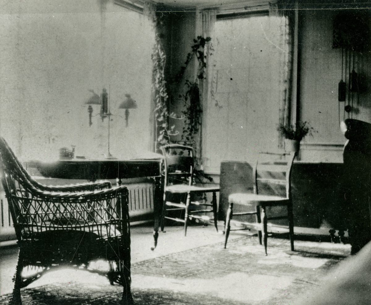 Chairs and tables windows of the dining room of the Bush-Holley House.