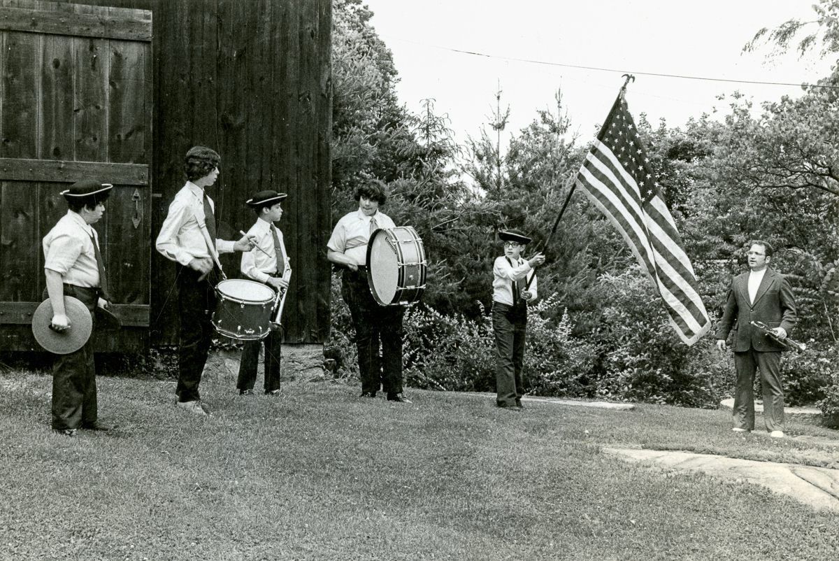 Members of a marching band rehearsing for a Bicentennial Celebration.Collection