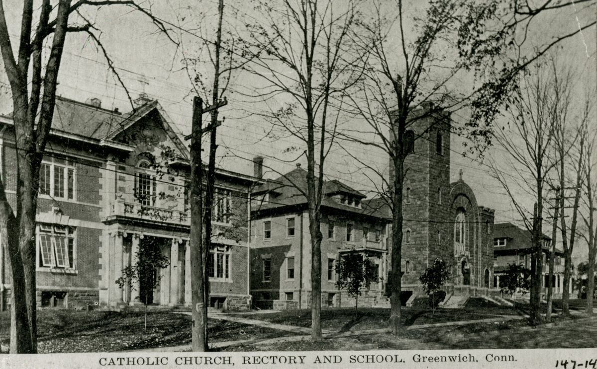 A view of the rectory and school of St. Mary Church on Greenwich Avenue.