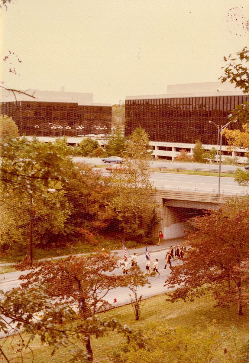 Images of a parade celebrating the bicentennial signing of the Declaration of Independence with many reenactors in Colonial dress.Collection
