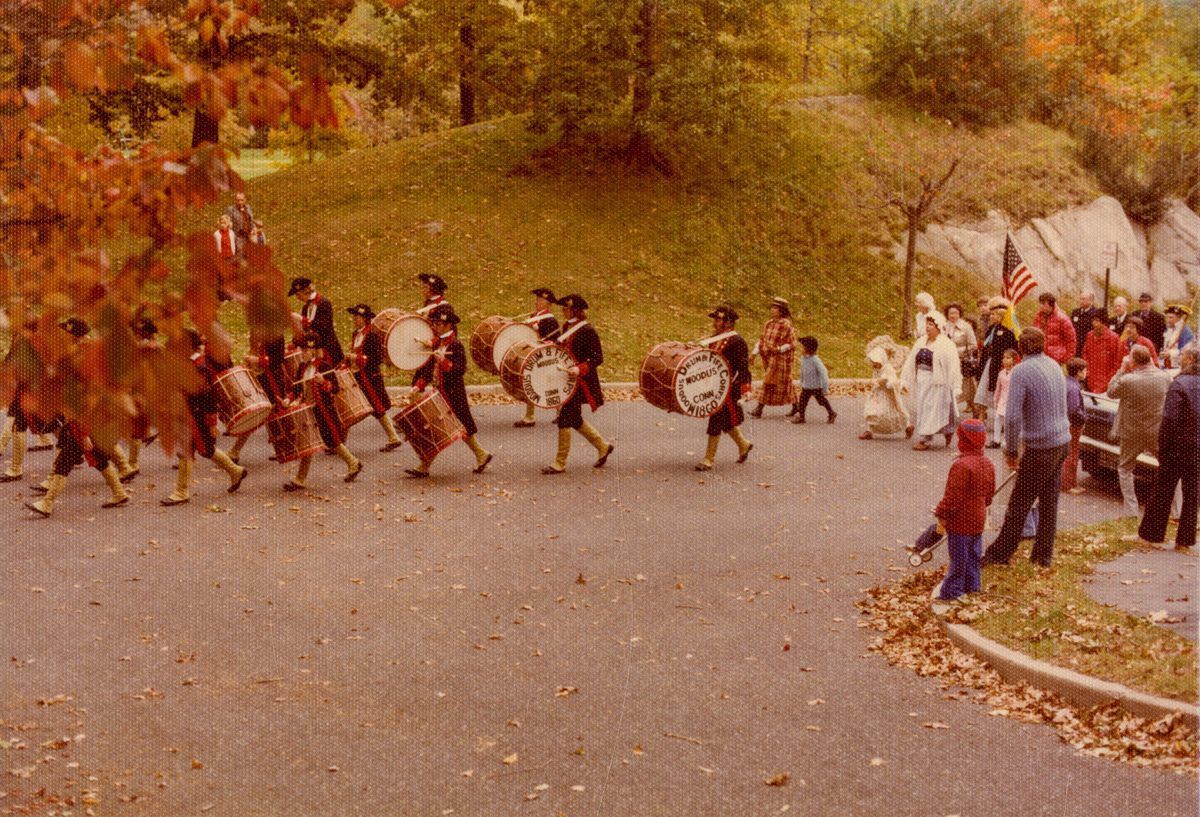 Images of a parade celebrating the bicentennial signing of the Declaration of Independence with many reenactors in Colonial dress.Collection