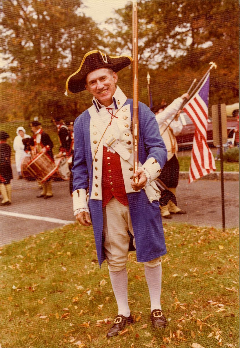 Images of a parade celebrating the bicentennial signing of the Declaration of Independence with many reenactors in Colonial dress.Collection