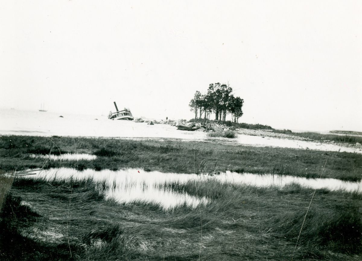 The steamer SE Spring, a side-wheeler steamboat, run aground on rocks by Mead's Point due to a navigational error; a few days latter a high tide and a tugboat allower her to be freed from the rocks and resume picking up vegetables from the Lower Landing in Cos Cob and from Greenwich Harbor's docks.Collection