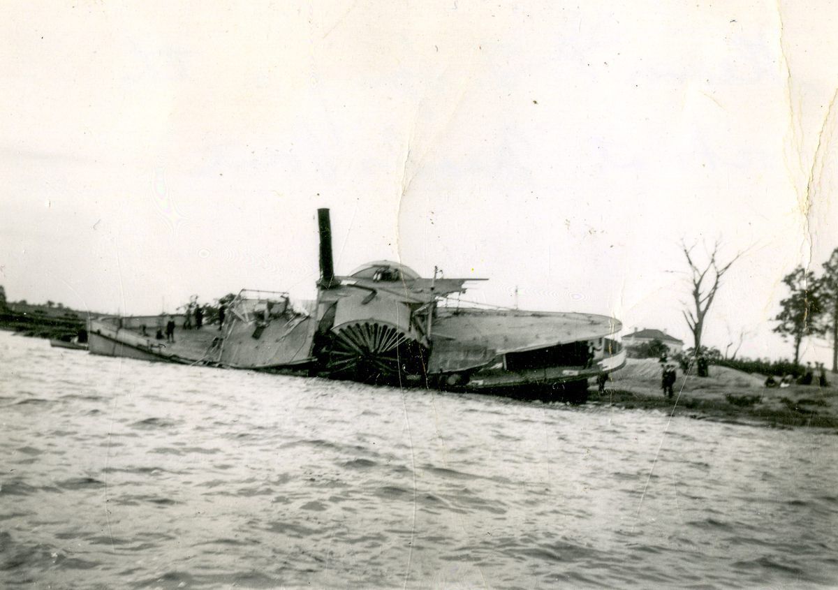 The steamer SE Spring, a side-wheeler steamboat, run aground on rocks by Mead's Point due to a navigational error; a few days latter a high tide and a tugboat allower her to be freed from the rocks and resume picking up vegetables from the Lower Landing in Cos Cob and from Greenwich Harbor's docks.Collection