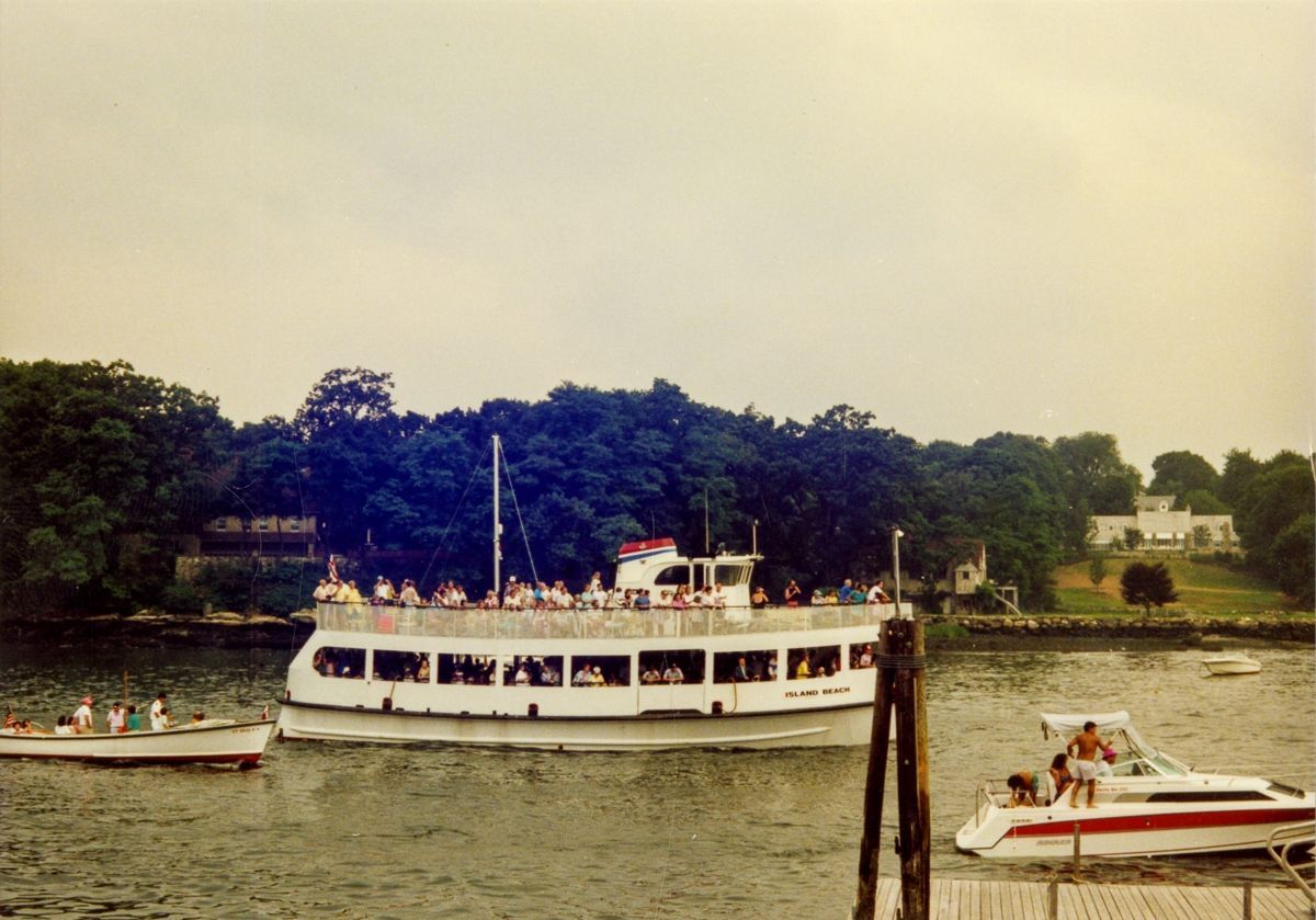 Tall ships and the Island Beach Ferry in a show celebrating the 350th Anniversary of Greenwich's founding.Collection
