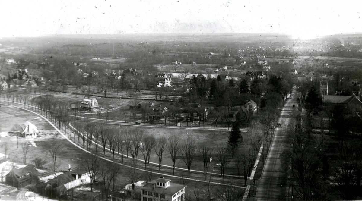 Views of central Greenwich from the steeple of Second Congregational Church, located at the intersection of East Putnam Avenue and Maple Avenue.Collection