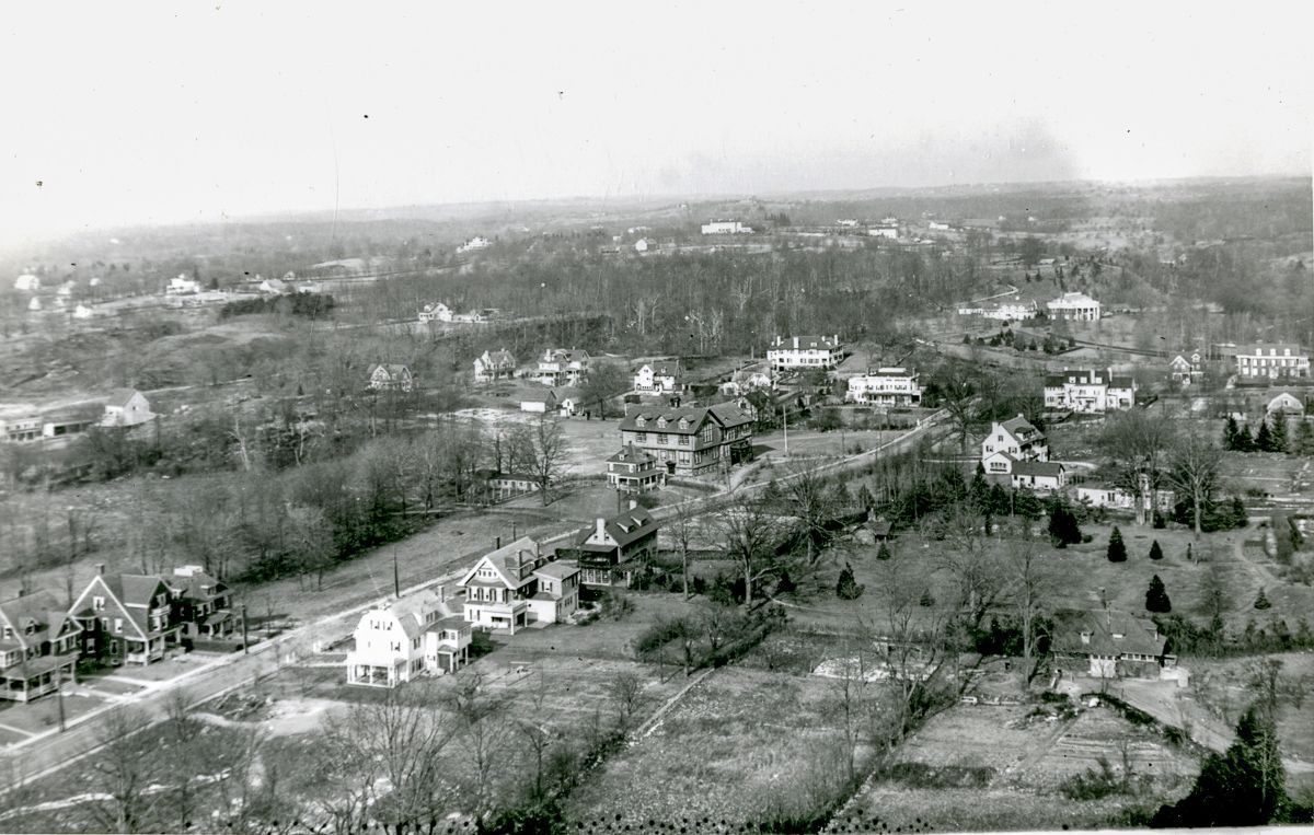 Views of central Greenwich from the steeple of Second Congregational Church, located at the intersection of East Putnam Avenue and Maple Avenue.Collection