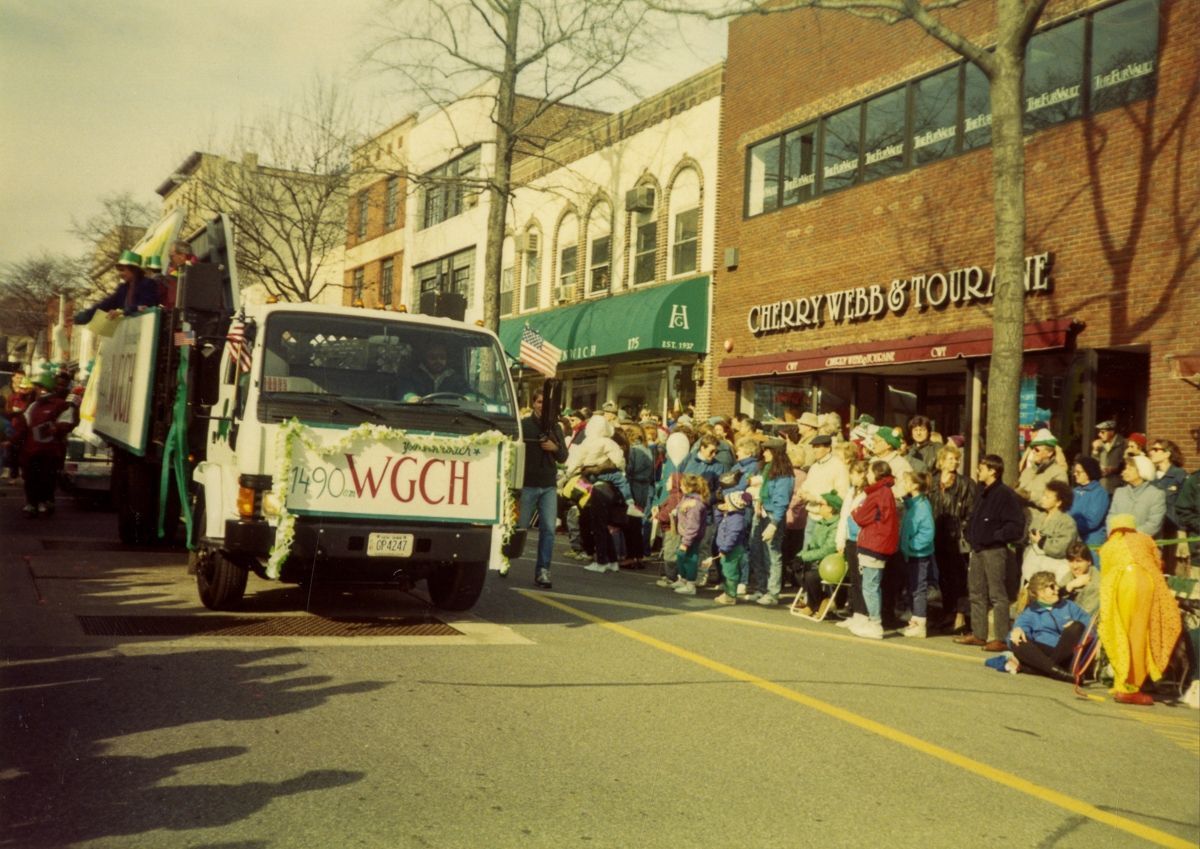 Images of a Saint Patrick's Day parade on Greenwich Avenue.