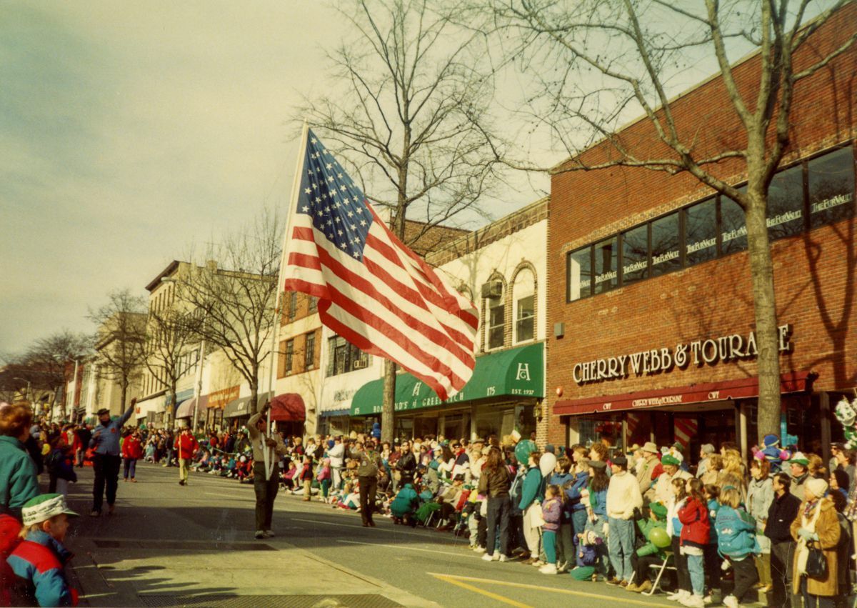 Images of a Saint Patrick's Day parade on Greenwich Avenue.