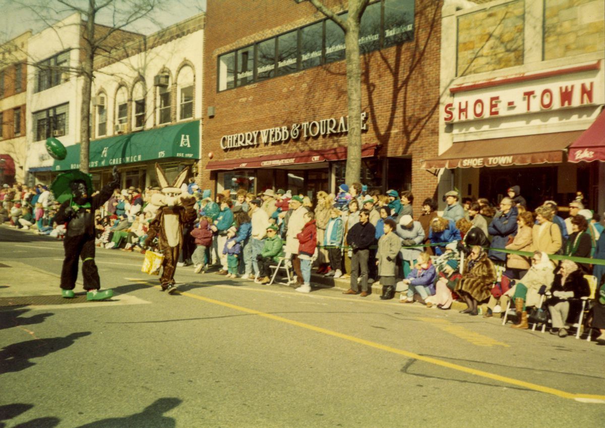 Images of a Saint Patrick's Day parade on Greenwich Avenue.