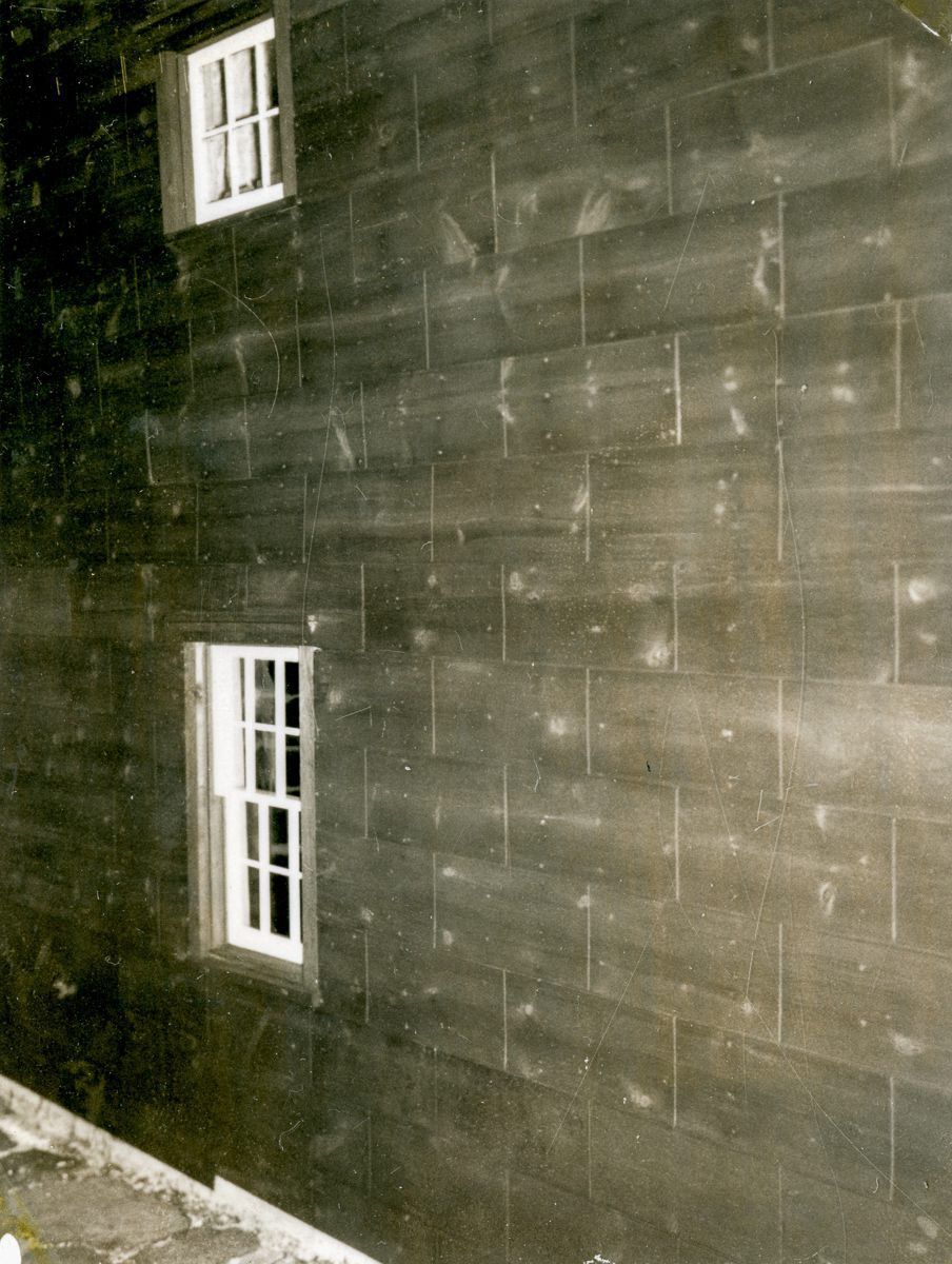 A wall on Bush-Holley House; the wooden siding is cut to look similar to stone blocks.