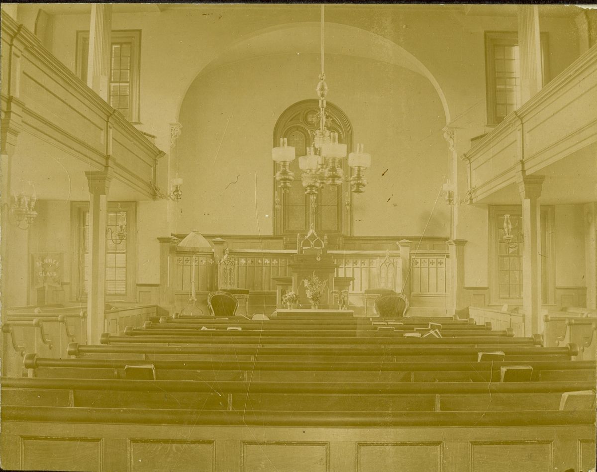 View of the interior of Stanwich Congregational Church, looking towards the pulpit.Collection