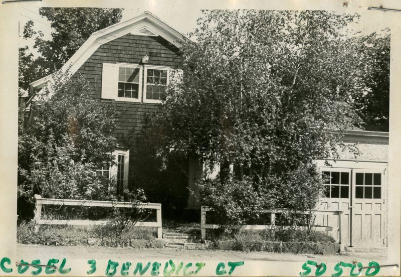 Shingle house built circa 1900 with a gambrel roof viewed from the street.