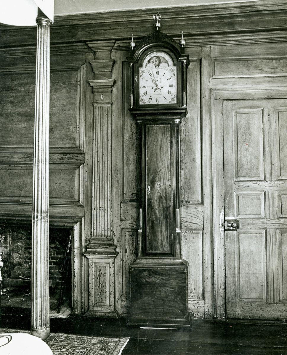 A grandfather clock standing in the parlor of the Bush-Holley House.