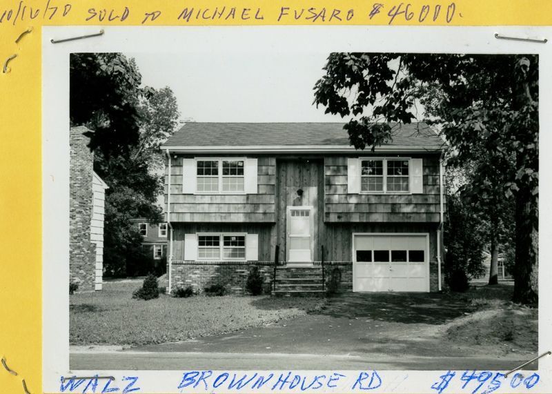 Raised Ranch house built in 1970 with wood siding and a garage viewed from the street.